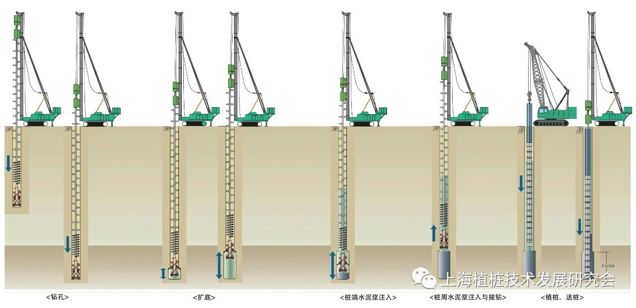 静钻根植桩技术是在高承载力埋入式桩的基础上开发的一种绿色环保的新型桩基技术,该技术采用专用单位搅拌钻机对土体进行钻进、搅拌、并在桩端位置进行扩孔,然后在钻杆提升过程中边搅拌、边注浆、以形成水泥土桩孔,最后主要靠桩自重将预制桩植入孔内,水泥土固化后形成水泥土包裹刚性桩体的植入桩。该技术无挤土、噪声小,解决了常规预制桩沉桩深度和适用土层与环境受限的问题,具有成桩后桩身完整无损伤、桩身承载力及耐久性提高等优点,应用范围广,是一种对低环境影响、高效节能的新型桩基。技术应符合《预应力混凝土管桩技术标准》JGJ/T406-2017、《地基基础设计标准》DGJ08-11-2018等级标准要求。