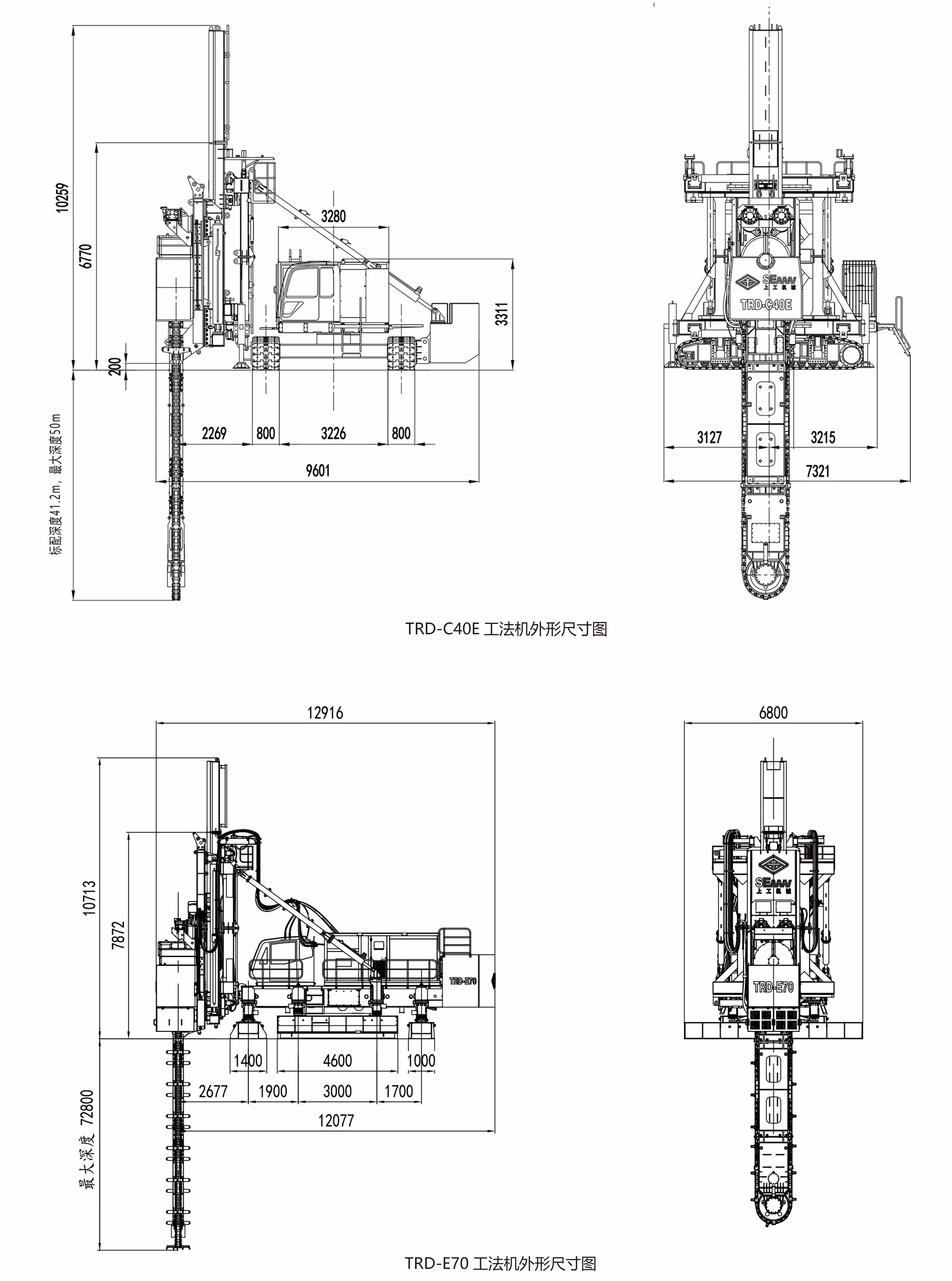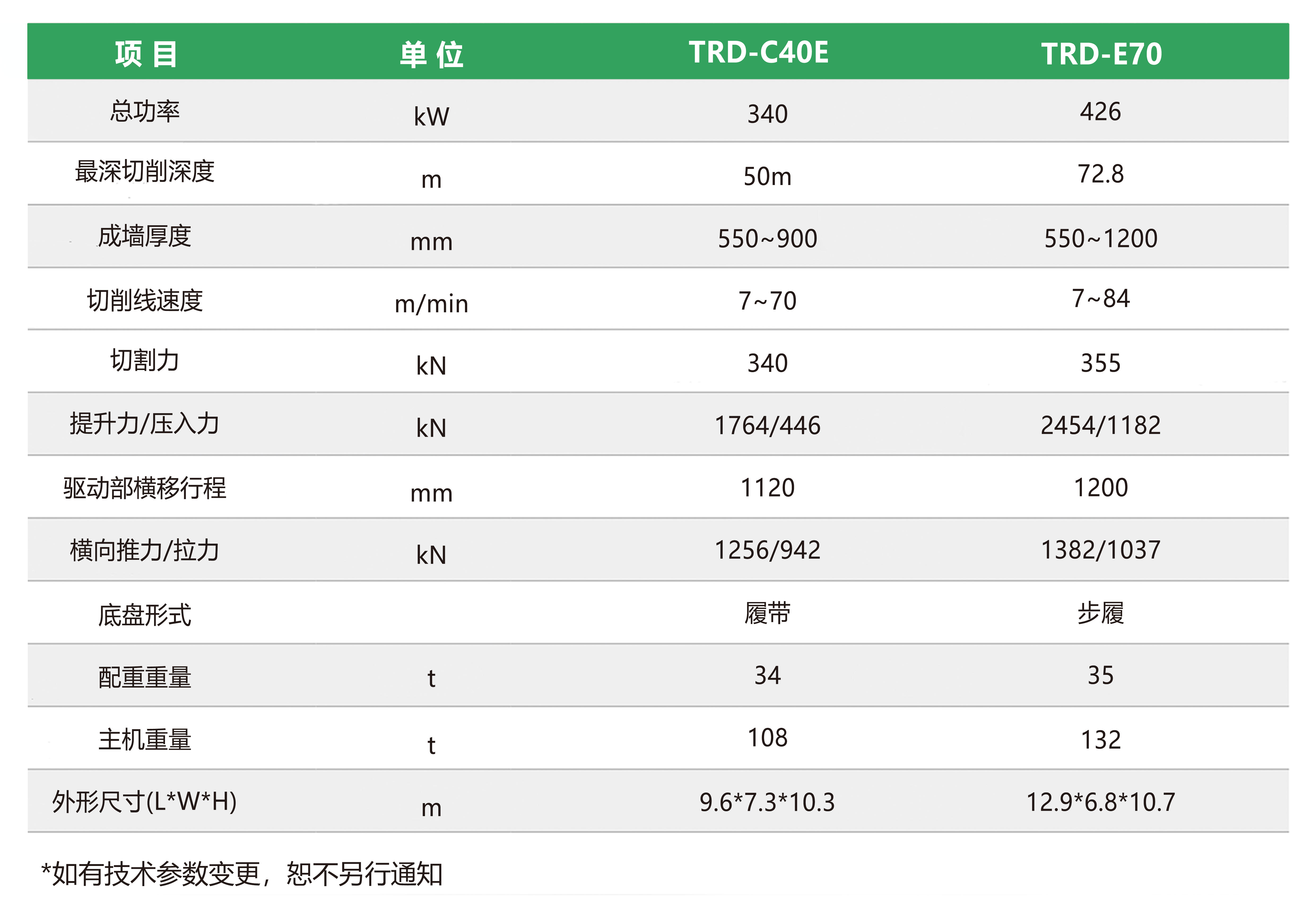 TRD-E70工法机采用高性能电机作为主切削动力,最大成墙深度72.8米,成墙宽度550-1200mm,是针对大深度工程高效施工的重量级产品。