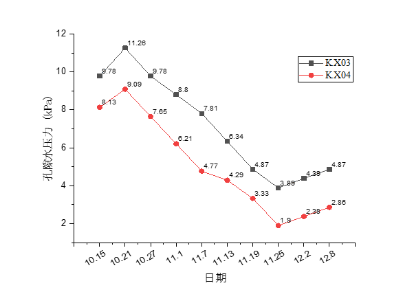TAD区域(KX03、KX04)孔隙水压力曲线图