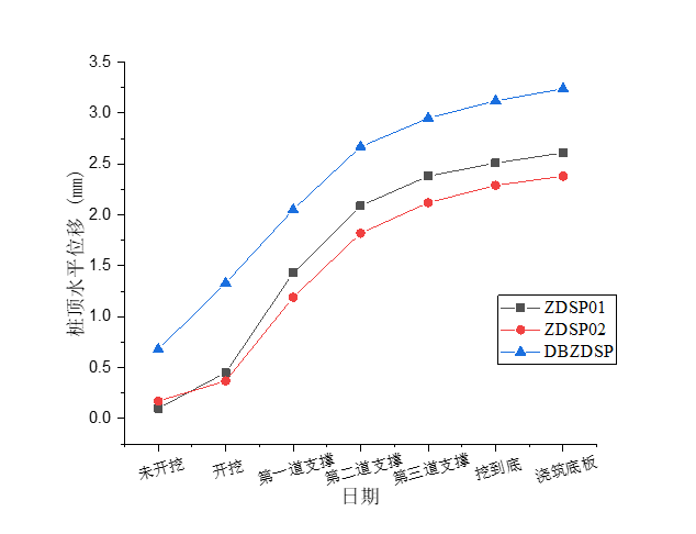 桩顶水平位移变化曲线对比图