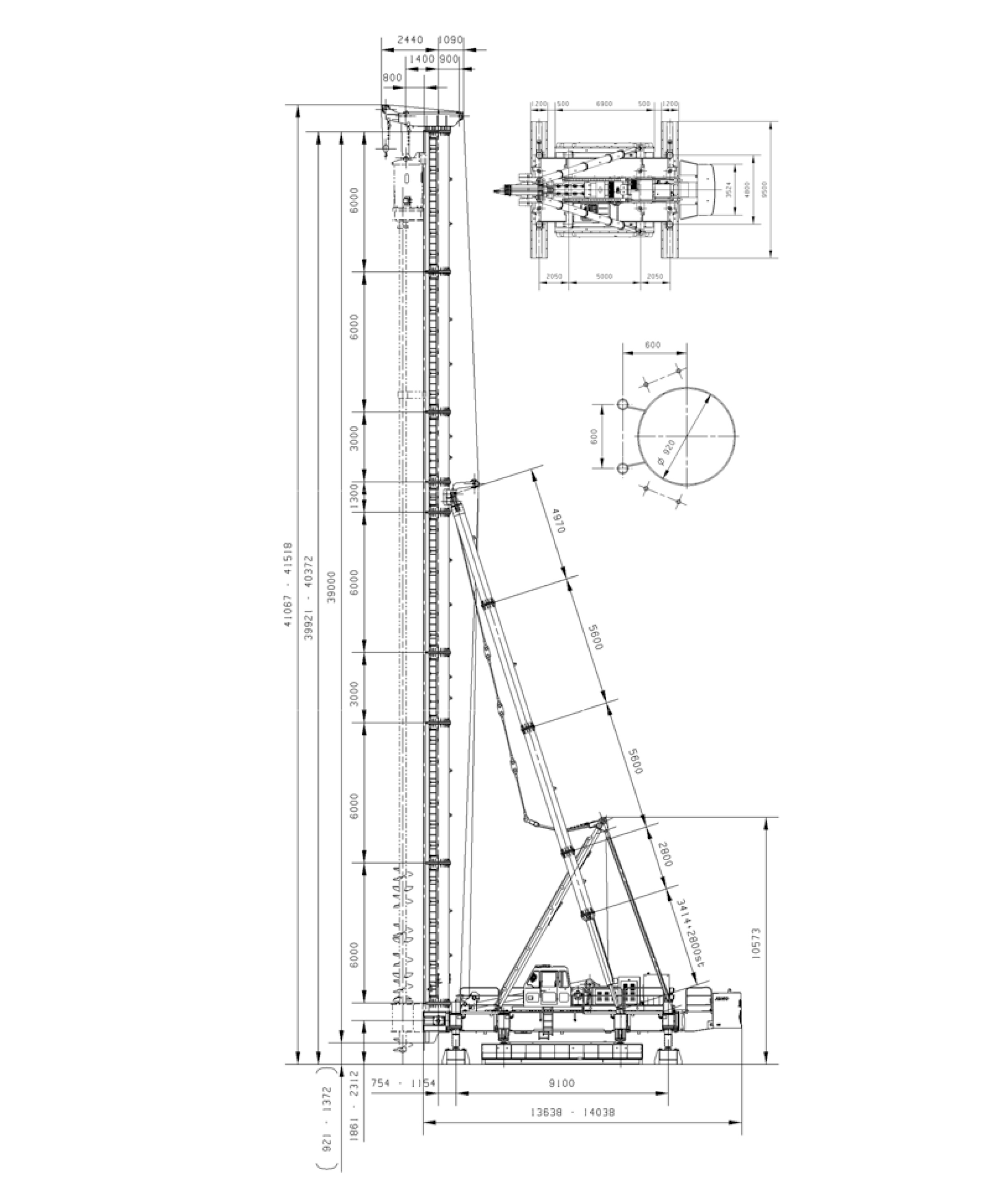 1、JB180最高60米立柱,配合ZLD超深系列连续墙钻孔机(三轴)施工时最 大深度达53米,充分满足基坑围护和软土地基加固的施工要求。