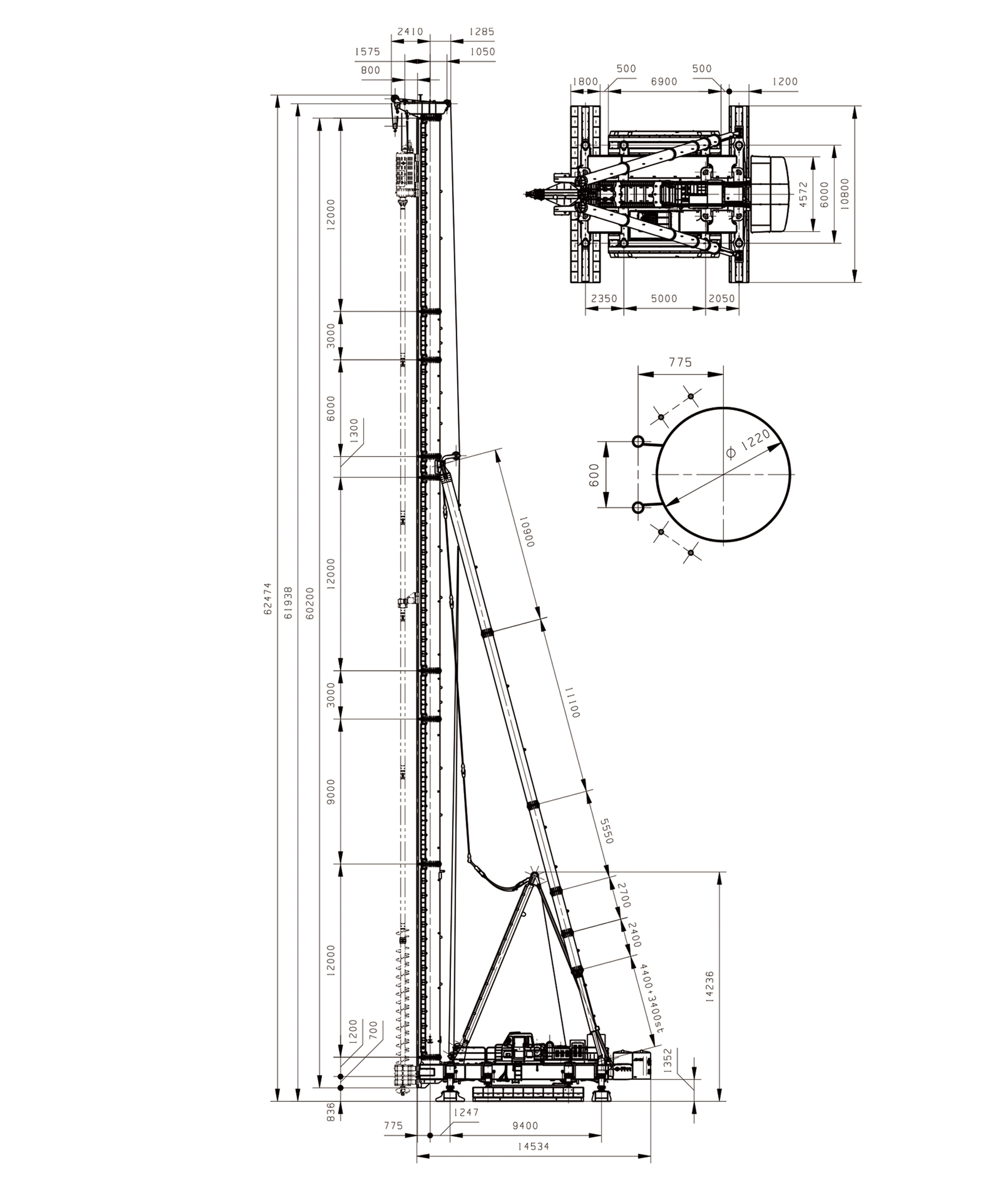 本产品适应各种桩基施工需求,尤其能满足深基础施工中广泛采用的地下连续墙施工工艺(即SMW工法),亦可悬挂柴油打桩锤、静钻根植工法钻 机等各种基础施工设备,是高架道路、高速公路、桥梁、港口、码头、地 铁车站和高层建筑中桩基础施工的多功能、高稳定性施工设备。
